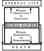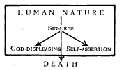 Under (b), whatever the disposition of the individual, whether a disposition to godlessness impelling the lusts of the flesh, or a disposition to godliness impelling the fruits of the spirit, human nature as such remains unchanged, and the impulsion of that nature is the SIN-URGE, whose directivity remains constant.