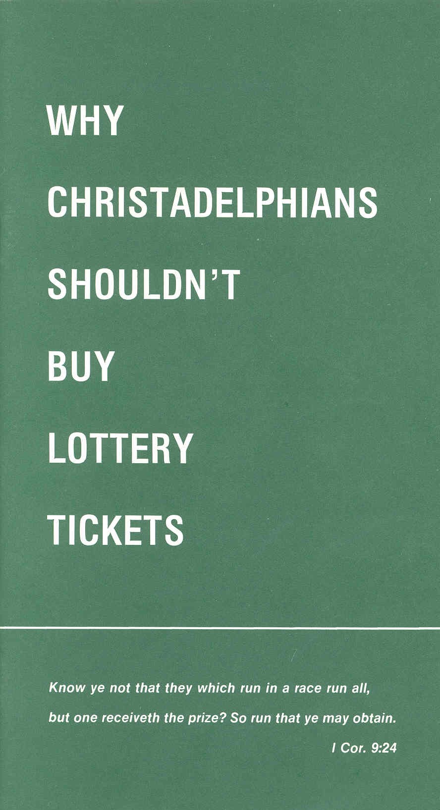 Why Christadelphians shouldn’t buy lottery tickets seemed at first sight to fall into this ‘unsuitable’ category. The problem, surely(?), was virtually nonexistent, and its solution could hardly justify the time and expense put into the writing and distribution of a 12-page pamphlet about it. And surely even the few who might be unwise enough to indulge in the occasional flutter would not be unaware in their own consciences of the reasons why they ought not to continue to do so. A lottery is a gamble, and gambling—the risking of loss against the chance of something for nothing—is morally reprehensible. And that seemed all that needed to be said. And yet the pamphlet had been written, and out of respect for the writer, at least, it deserved to be read . . .