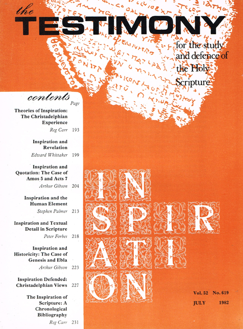 The three Special Issues which appeared between September 1965 and January 1975 were all highly topical numbers. As those who lived through the period will know, the middle 1960s were fraught with ecclesial problems, many of them emanating from the Endeavour movement and from the writings of Brother R T. Lovelock, especialy in respect of the alleged non-literality of the Serpent of the Genesis record. “The Bible and modern thinking—assent or dissent?” (September 1965) was The Testi­mony’s head-on response to this formidable array of current problems. Devised and produced by a small sub-committee headed by Brother E. Whittaker, and published under the vigorous editorship of Brother H. W. Craddock, this Special Issue was virile and forthright in a way which the magazine had hardly ever been before.