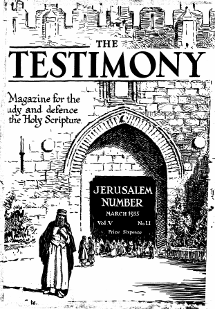 The “Jerusalem Number” of The Testimony, as the magazine’s first ever Special Issue was called when it was published in March 1935, was very much a collaborative effort between editors and readers. The October 1934 issue carried an announcement about a forthcoming number on Jerusalem, inviting “the co-operation of our supporters in this venture, particularly with hitherto unpublished photographs and ideas as to matter to be included”. The January 1935 issue reported that a conference had been arranged for the 24th of the month in London at which Section Editors and intending contributors would “deal with the completion of our special March number”. The notice also promised that ” as soon as the issue has gone to press, all photographs and pictures that have been kindly loaned will be returned carefully to the senders”.