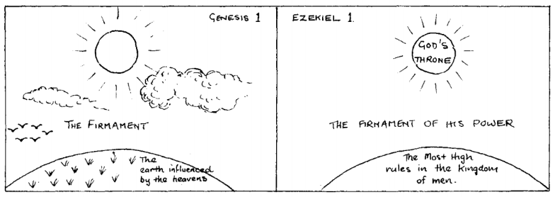 Having described to us the approach of the storm cloud from the north, and then the cherubic chariot with its living creatures and its wheels, Ezekiel now directs our attention to the most awe-inspiring part of the vision – “The appearance of the likeness of the glory of Yahweh”, which, when Ezekiel saw, he fell upon his face. But first he directs our attention to what he describes as being the “likeness of a firmament” (v.22).