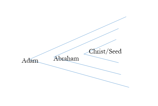 Since Abraham is the father of both natural Israel and of the faithful, the cones that begin with him are evidently set in suspension inside the cone that begins with the promise of the seed of the woman. The seed promised to Abraham is the seed of the woman, but the faithful now focus on the promises to Abraham. The difference with the giving of the Law, or even with Moses and the ‘birth’ of the nation of Israel from Egypt, is that these happenings do not yield a federal head. The father of the nation of Israel is not Moses, nor is their exodus from Egypt the origin of the nation; it is Abraham. The Law was added into the Abrahamic dispensation because of transgressions (Gal 3:19). The same point also applies to David and his seed even though Jesus is the seed of Abraham and of David (Matt 1:1). David is not the federal head of a people, but individuals can become heirs of the Abrahamic promises through baptism into Christ (Gal 3:27-29). Rather, the Davidic kingdom is a more refined specification of the dominion of the Last Adam, a dominion now specified in terms of kingship.