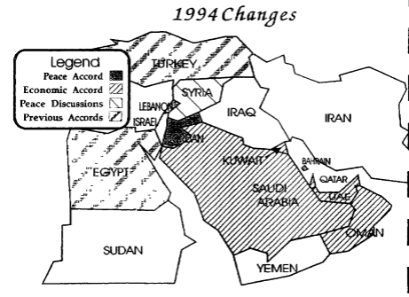 In May, Israel and the Palestinian Liberation Organization signed a peace accord. This was followed in October by the peace agreement between Jordan and Israel. Talks are continuing with Syria although noth­ing has yet been firmed up.