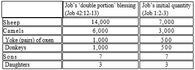 The scripture tells us Job received a ‘double portion’ of all he had before (Table 16_1)