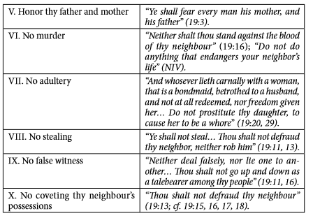 Second, Leviticus 19 reiterates the Ten Commandments: