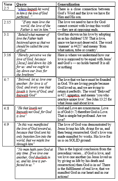 This ‘equal to’ love is the most fulfilling, perfect form possible. And it is this love that John, in his first epistle is capitalizing on. He tells us what this love is all about.