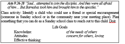 - “Saul … attempted to join the disciples. And they were all afraid of him. … But Barnabas took him and brought him to the apostles” (Acts 9:26-28). Thank God for Barnabas! He was willing to stick his neck out and give a questionable man a chance. What lessons are here for us and our children? Do the children know anyone who needs a friend to come along side and help him or her become accepted?