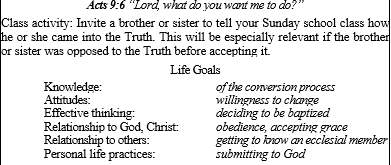 Let’s conclude by looking at two of the many life application activities being prepared for posting on the Tidings website. The first example will be accessed from a menu entry that reads: Scripture — Acts 9:6; Subject — Conversion; Learning Level — Preteens, Teens.
