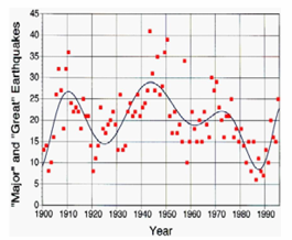 the last century from the count of earthquakes over magnitude 7.0 over the last 100 years, as shown alongside2.