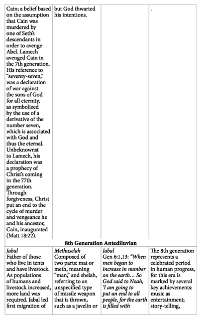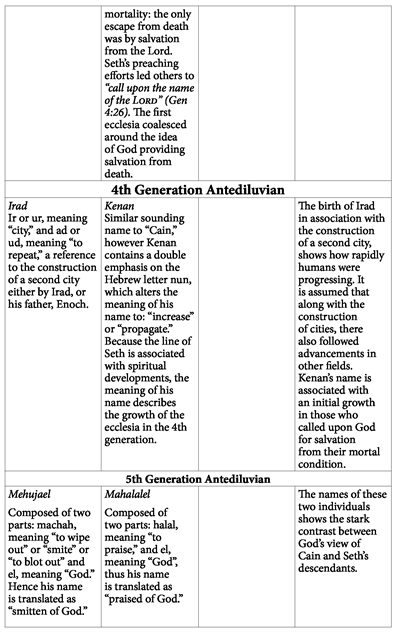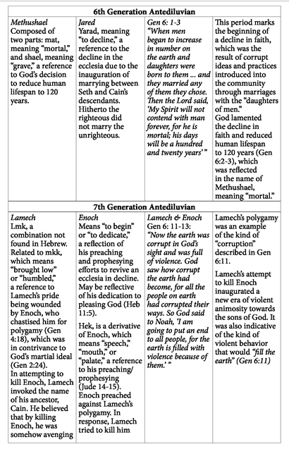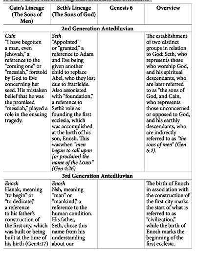 As has been shown, Gen 6:1-11 correlates to events occurring in the genealogies of Gen 4 and 5. The following chart illustrates this correlation: