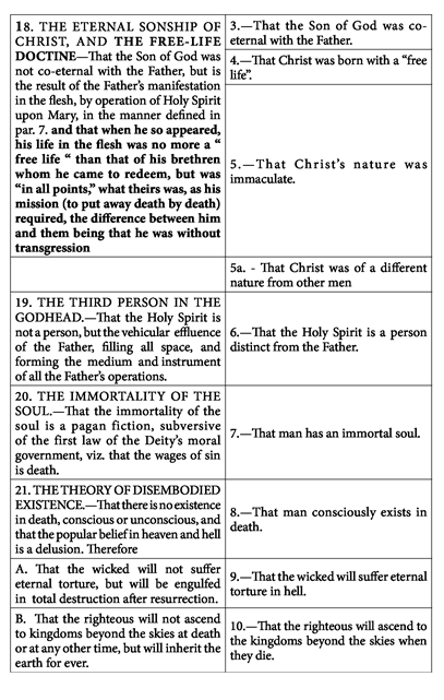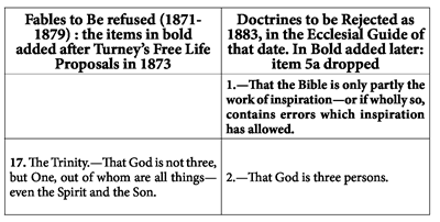 One major change after 1883 was that no Scriptural references were ever added to the “Doctrines to be Rejected”. The reason for this is unclear, although it must be pointed out that John Thomas’ “synopsis” of 1867 included no Scriptural references at all, although perhaps this was because he wanted to produce a one page “Statement of Faith”. Quite why references were added after 1883 to the “Truth to be Received” but not for “Doctrines to be rejected, formerly “Fables to Be Refused” we will have to ask Robert Roberts in the Kingdom.