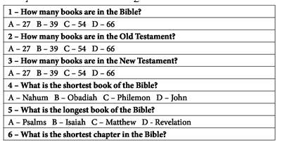 A Multiple-Choice Bible Game with 23 Questions and Answers