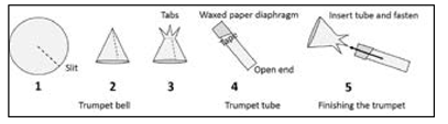 - Decorate the trumpets and start making music. It won’t take the children long to master the technique of producing a melody through the vibrating diaphragm.