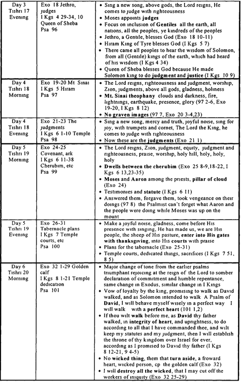 The following table summarizes the parallels we have noted between Book IV of the Psalms and the readings from the Torah and the Prophets.