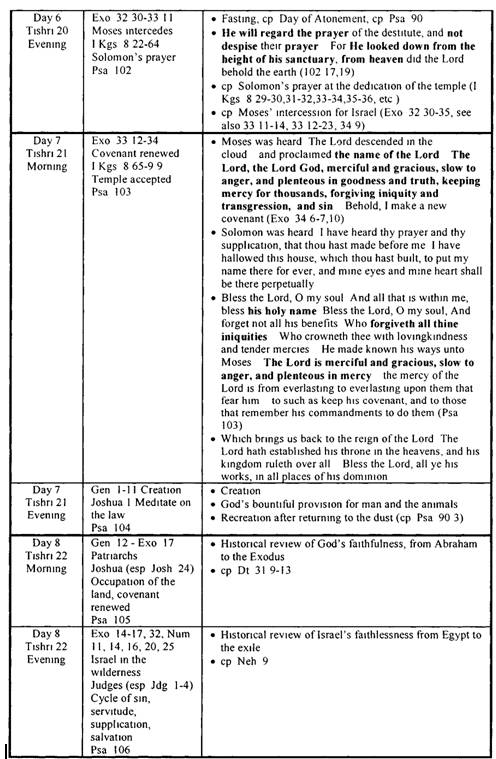 In our last article we came to the end of the seventh day of the Feast of Tabernacles, Tishri 21. Our morning hymn, Psalm 103, celebrated the mercy of the LORD. He has forgiven those of us who fear Him, who keep His covenant, and who remember His commandments to do them. We are indeed blessed by our Heavenly Father, who pities us His children. Our hymn was patterned after the lessons from Exodus and Kings.